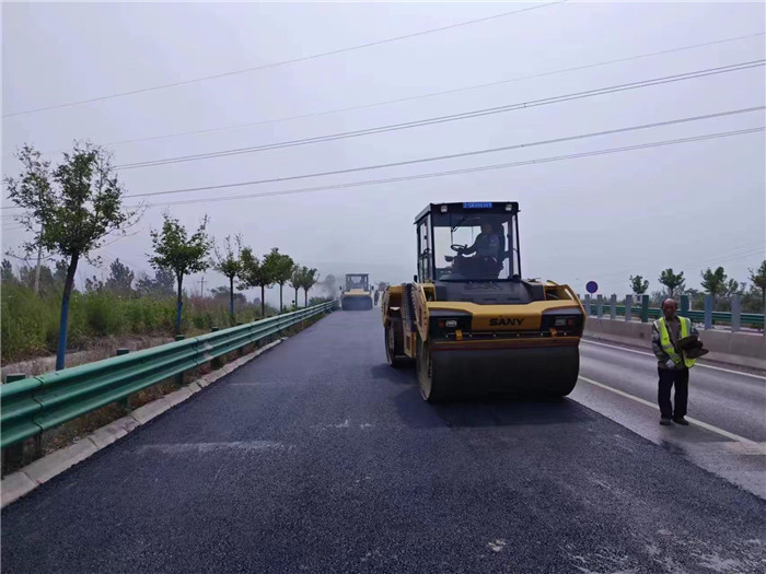 二工區上行青龍澗橋西攤鋪瀝青混凝土碾壓